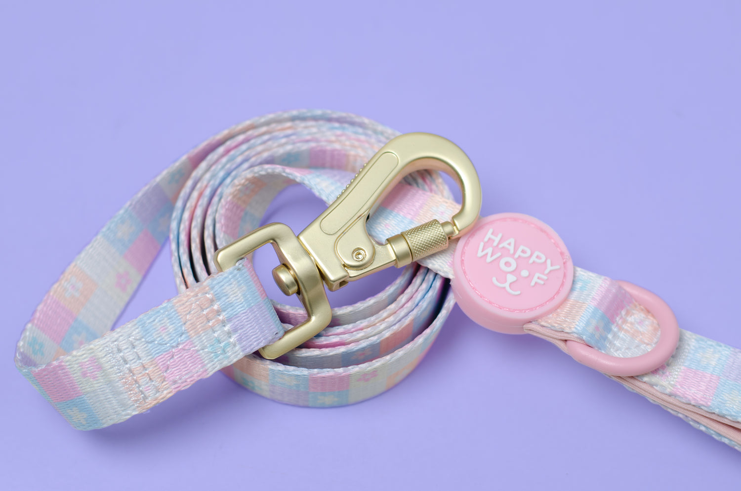 Let your pup lead the way in style with this vibrant leash featuring cheerful daisies and soft pastel checkers. Designed to match the 'Flower Power'harness, this leash adds a playful, charming touch to your daily walks, all while offering strength and reliability.
