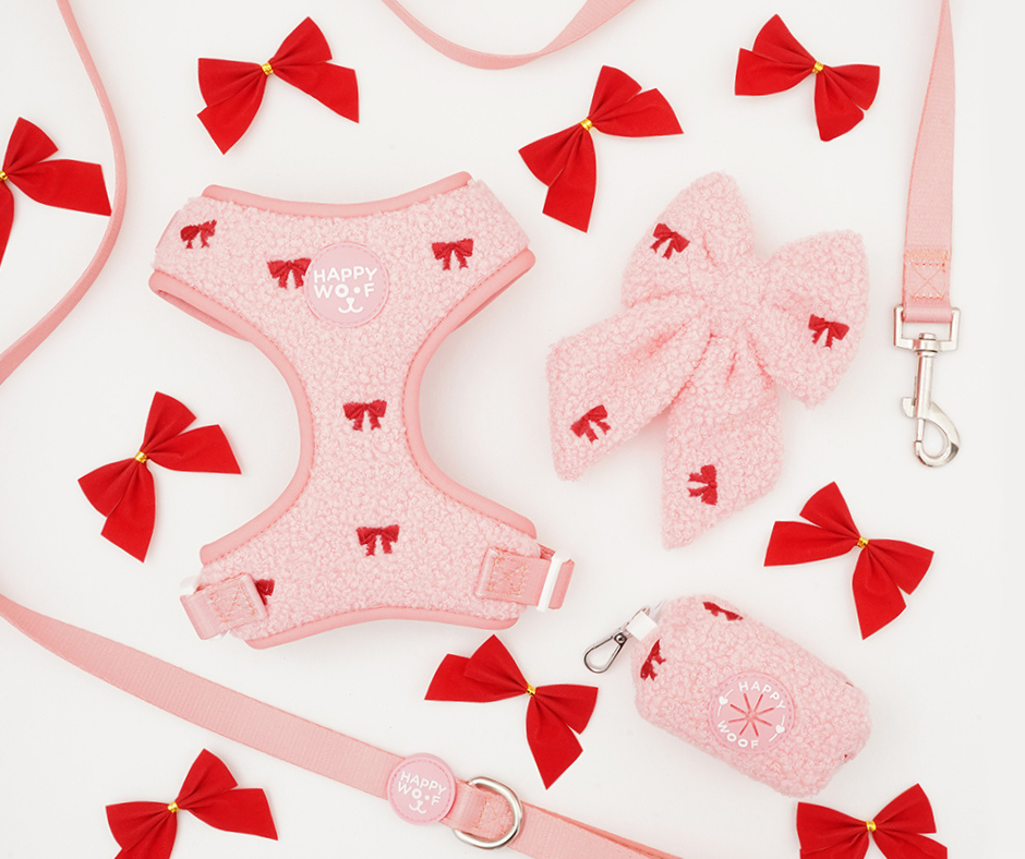 Created to bring that same heartfelt charm to your pup’s festive walks. Made with soft teddy fleece, detailed with decorative bow embroidery, and wrapped in a gentle blush pink hue with matching straps — it feels like a warm holiday hug your pup can wear.